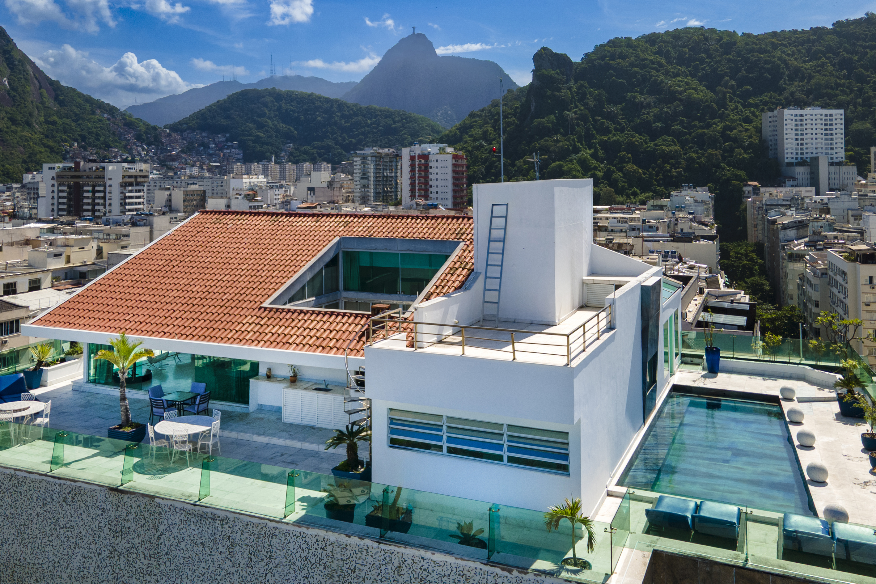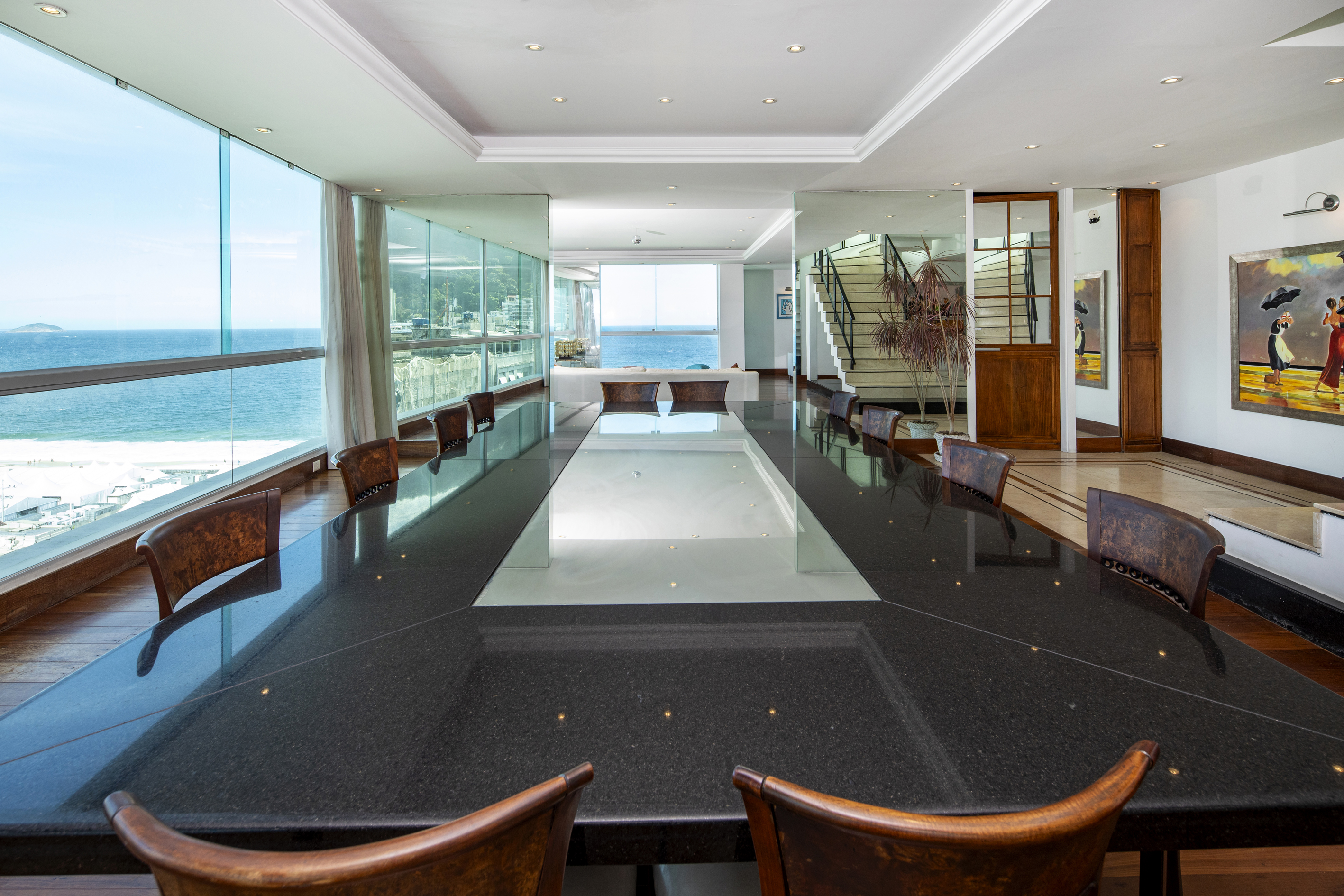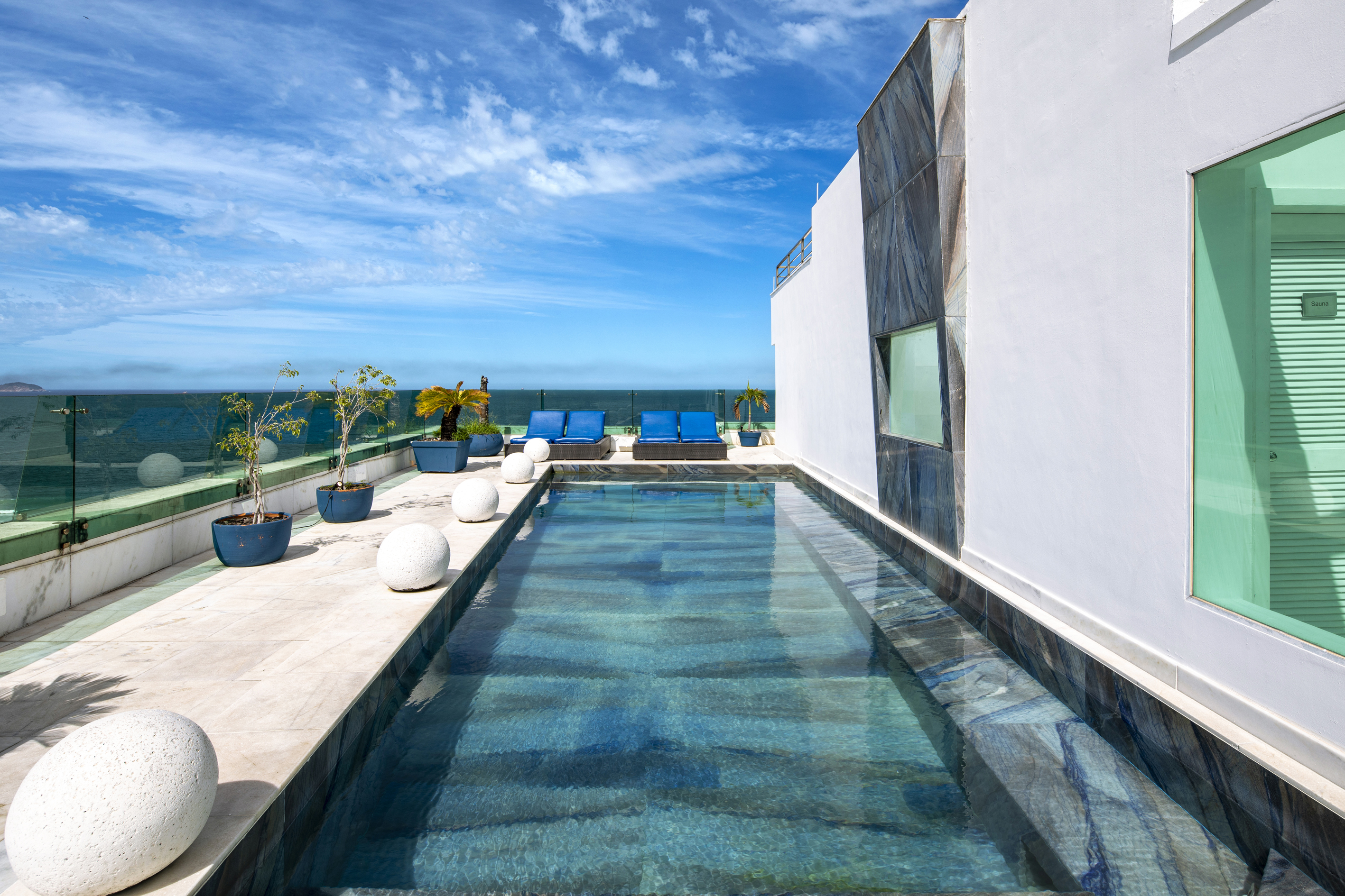 Thirteen stories above Avenida Atlântica — a duplex of five suites, a marble staircase, and the largest private pool in Copacabana.