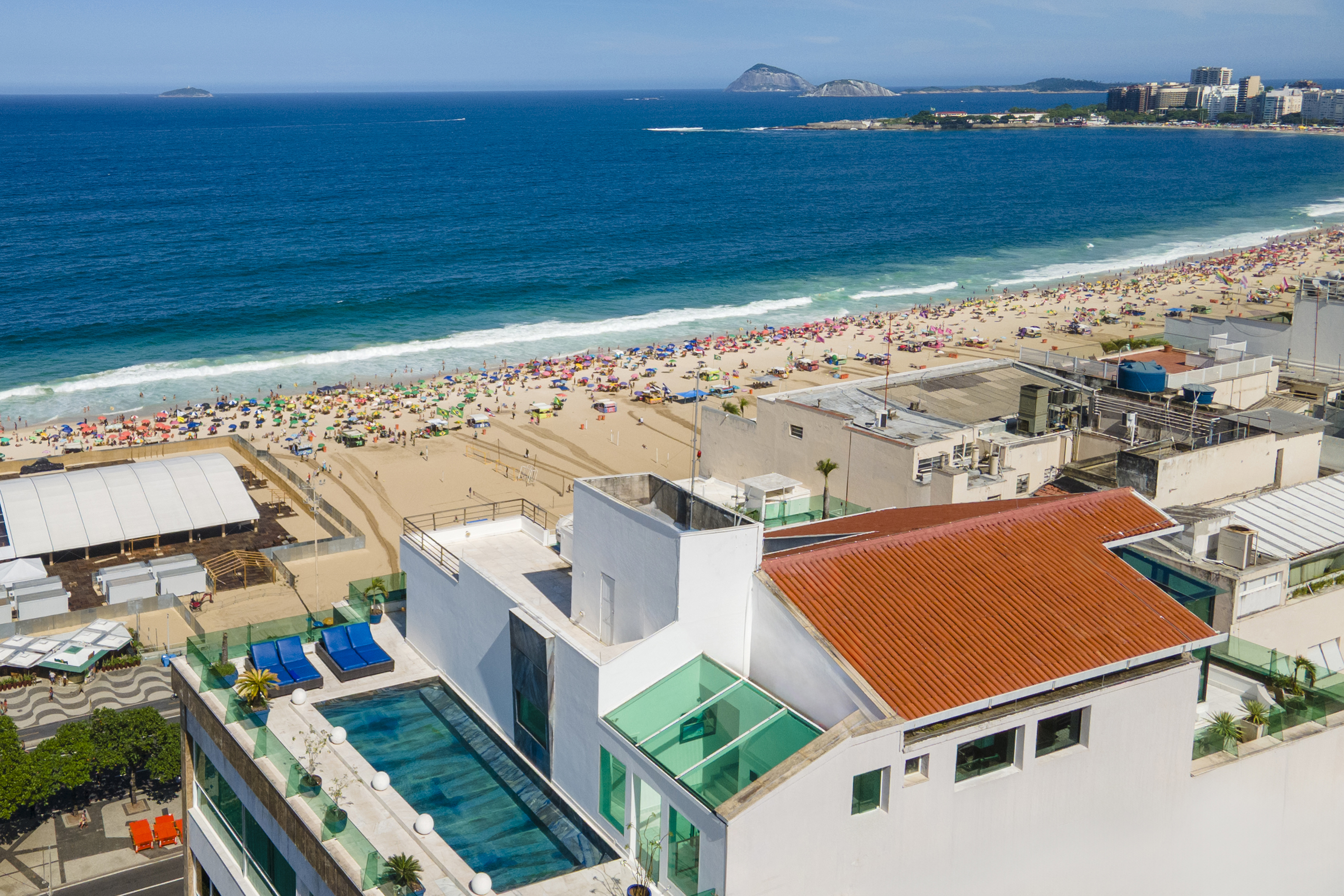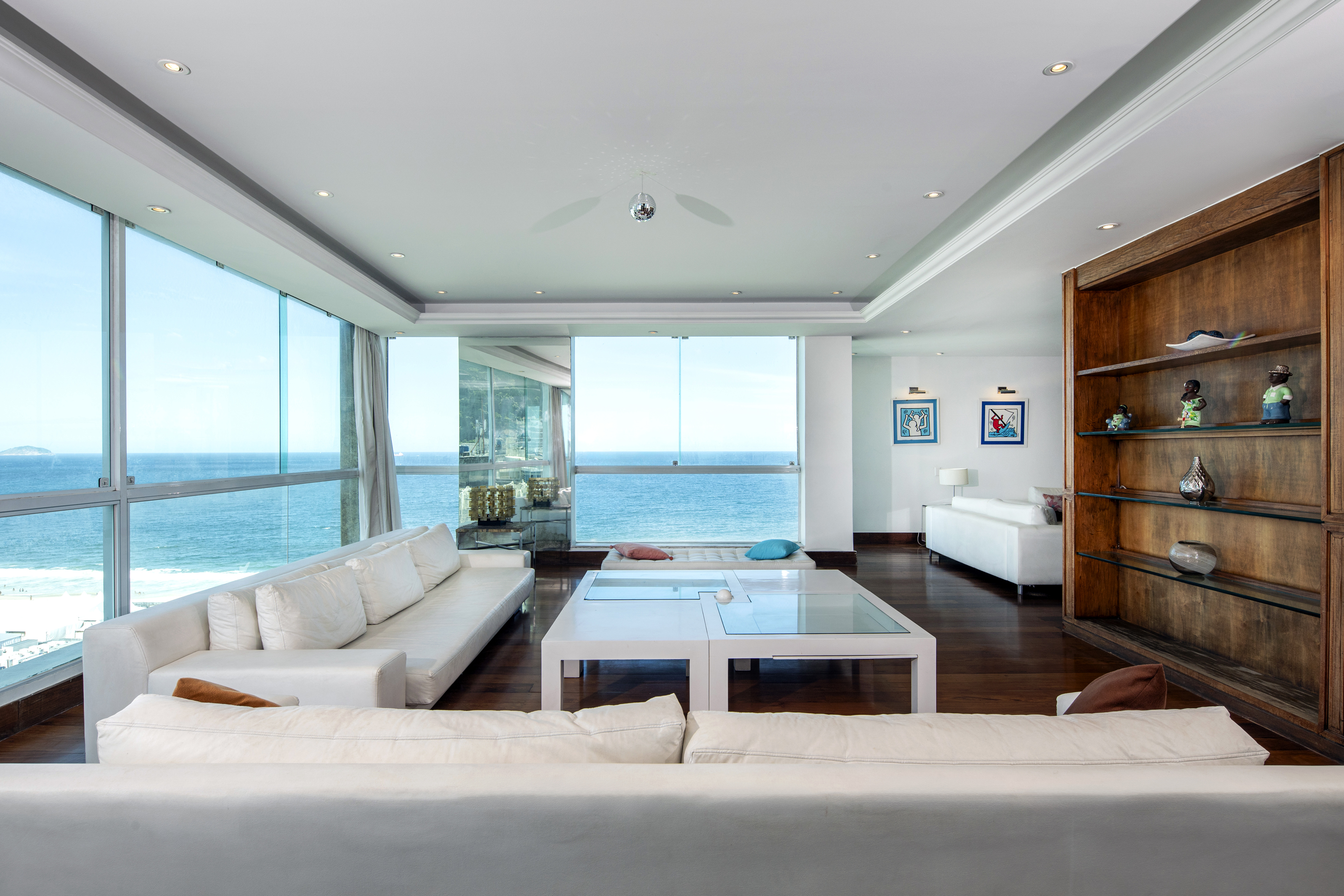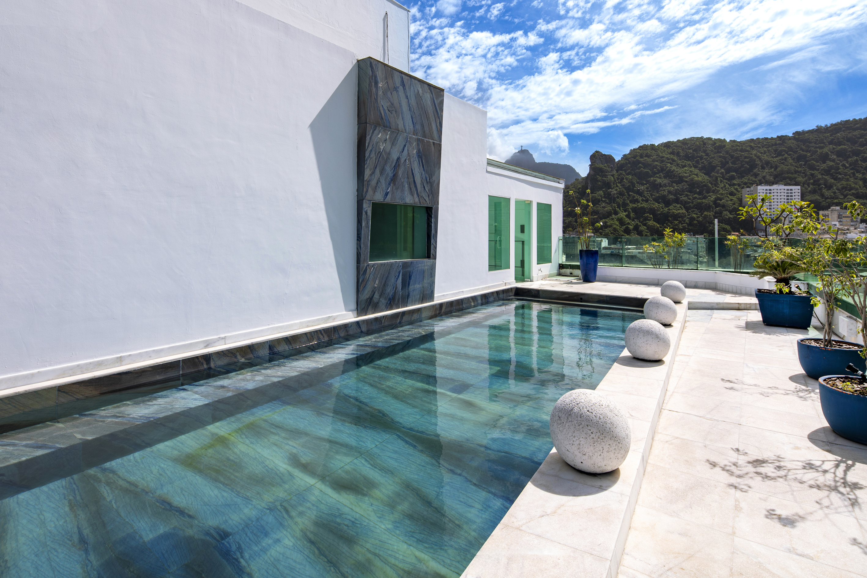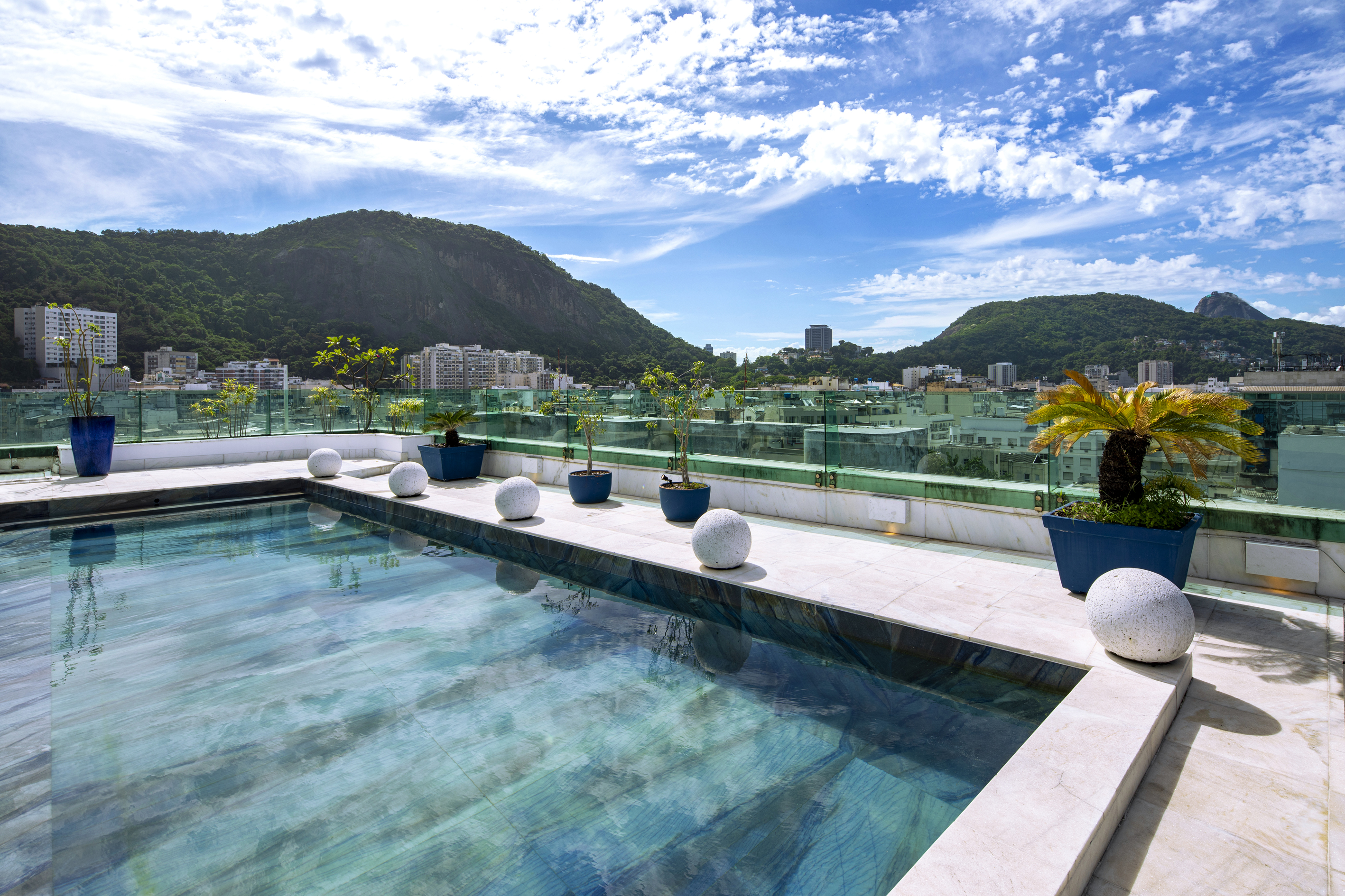 Thirteen stories above Avenida Atlântica — a duplex of five suites, a marble staircase, and the largest private pool in Copacabana.