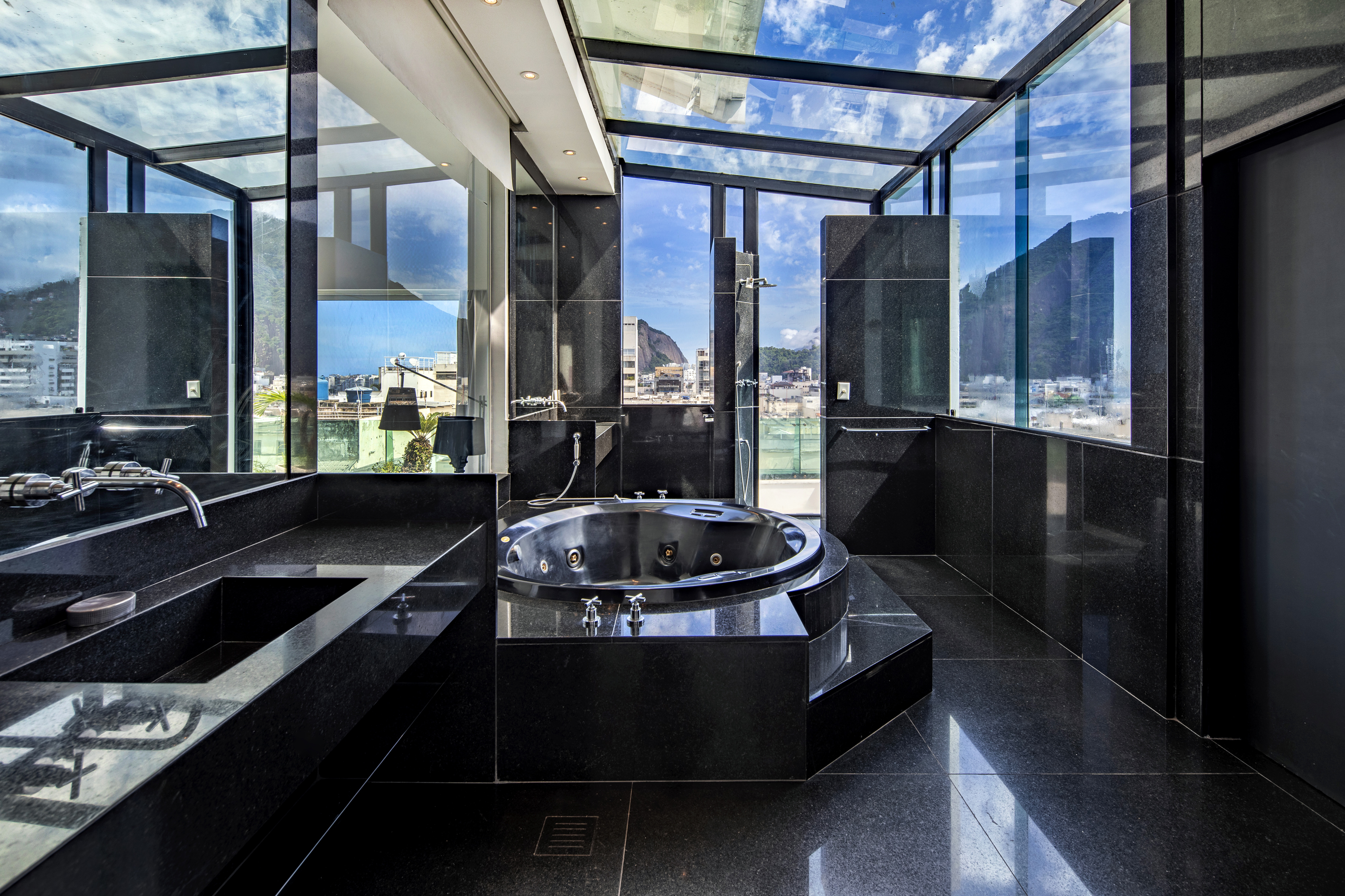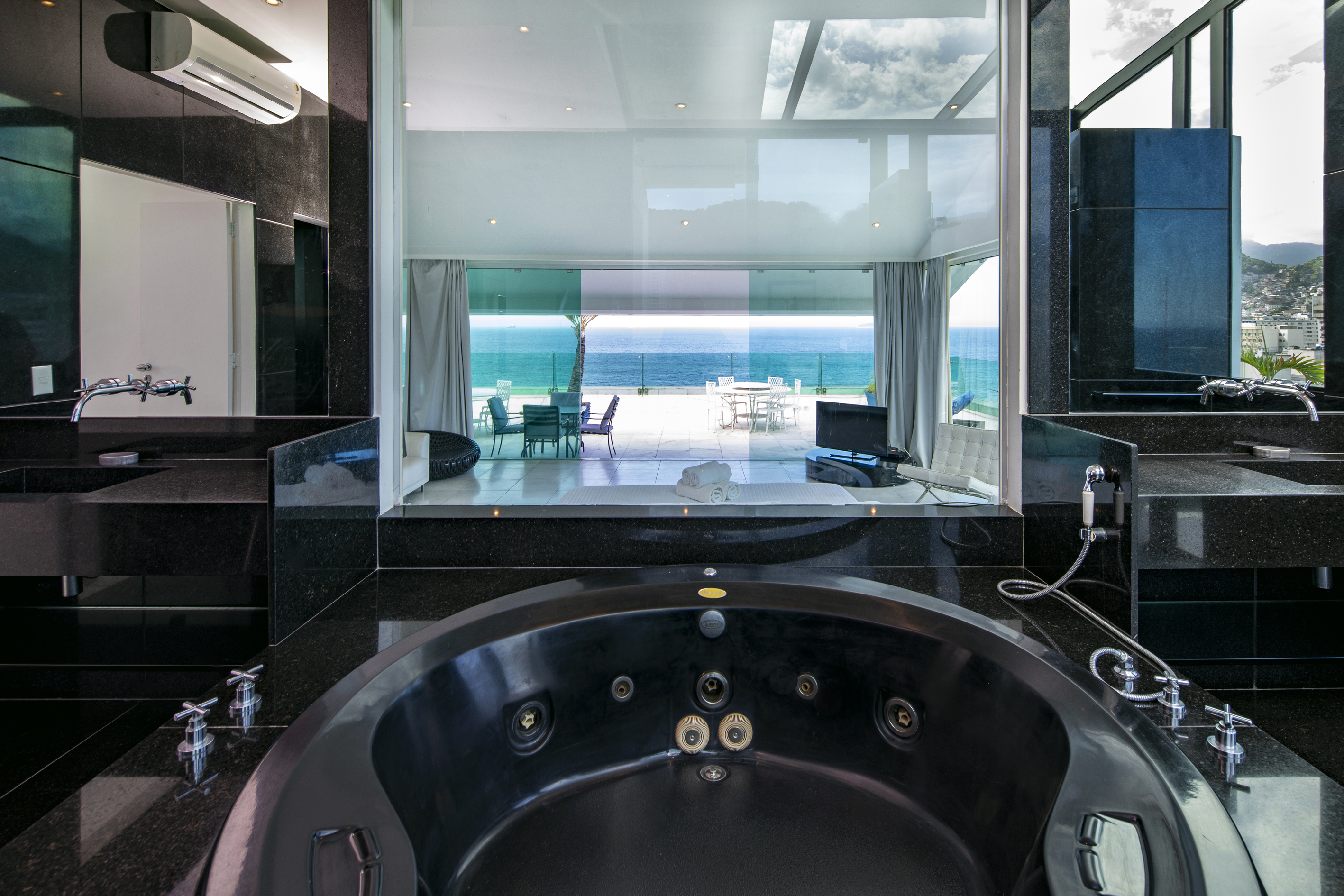 Two Brothers in the morning. Sugarloaf in the afternoon. Christ the Redeemer at dusk, lit like a benediction. The rarest of Rio views are not the ones you travel to — they are the ones you wake up to, from a bed, a pool, a tub.